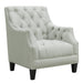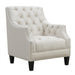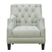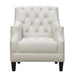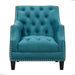 The Norwalk Button Tufted Accent Chair will look gorgeous in your home! This chair has so many beautiful details, including all over button tufting on the seat, back cushion and even on the inside of the arms. Nail head trim is outlined along the outer edges of the chair, elevating the style of this chair even further. The chair is upholstered in a smooth, microfiber like fabric and features diamond stitching. Straight edge arms and dark espresso wooden feet complete the look of this chair. - All Over Button Tufting Seat/Back/Inner Arms - Nail Head Trim - Smooth Fabric - Dark Espresso Wooden Feet - Straight Edge Arms - Foam Cushion Seat - Diamond Stitching Pine/Plywood Base S-Spring Seat Construction Webbing Back Construction Foam Arm/Back Cushion Filling Foam and Coil Spring Cushion Filling Arm Height: 25"; Arm Width: 5.5" Seat Height: 18"; Seat Depth: 21"; Inside Seat Width: 19" Back Height: 19" Feet Height: 5" Attached Cushions 32 D x 30 W x 36 H, 46lbs. 1 Year Limited Manufacturer Warranty