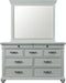 Elements International Slater 9 Drawer Dresser in Grey SR300DR. Sand-through finishes create a distinctly different look from traditional to country casual; with antiqued bronze knob hardware punctuating the look of each framed drawer front.