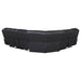 An all-in-one venue for entertainment delivers convenience and beauty in the three-piece power sectional set. Modern design features and a sleek rounded silhouetting suits style needs and assures inviting comfort for extended periods of watching movies and sports. Gorgeous leatherette upholstery enriches any living room or media room, embellished with pillowy foam filling and batting arranged carefully through tufting and channeling. Sinuous spring seating and attached seat and back cushions form individual luxury as seats feature power reclining for smooth, easy positioning. Keep beverages handy in two cup holders and stash remotes and accessories in a flip-top console.