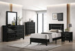 For a minimalistic space, this ensemble sets the perfect tone. With a sleek high gloss finish, each piece exudes a sense of confidence that's hard to ignore. The straight and sleek lines highlight the simple silhouettes, interrupted only by its hallmark feature--glitter-filled panel gaps in the headboard and the case goods that add just enough glam to this stunner of a set.