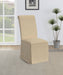 Put a stylish, somewhat formal spin on your dining room decor with a set of two classic parson chairs. Each features a tall back with an armless profile for impeccable comfort and elegance. The chair features plush foam padding, complete with neutral upholstery for a fresh, inviting presence at your dining table. The chairs showcase fully skirted silhouette, adding a touch of flowing movement. Tall, rolled backs ensure supportive seating for friends and family, wonderful for daily and occasional use. Key Features: • Classic parson chair design brings timeless elegance to your kitchen or dining room table • Tall back with a rolled edge offers optimal comfort and a chic silhouette • Plush seat features foam padding with soft, classic upholstery • Fully skirted design is elegant and a bit formal, perfect for entertaining friends and family • Neutral color allows versatility, blending beautifully with a variety of dining room decor schemes