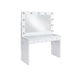 The Ariana 2Pc Vanity Set is a great piece to add your home to keep everything in one place. Makeup, hair tools, jewelry, and more all right here in the Ariana Vanity 2PC Set. Made of manufactured woods and clean lines, it gives a symmetrical silhouette. The set features three drawers for adequate storage. The Ariana Vanity Set also includes one power outlet, making it ideal for touching up your hair or even working on your laptop. Features: • Fashionable Glass Top • 3 Spacious Drawers for Adequate Storage • LED Light Bulb Trim • Includes One Power Outlet • Crystal Knob Pulls • Assembly Required Dimensions: Depth: 18.0" x Width: 46.0" x Height: 66.0" Weight: 51.0 lbs.