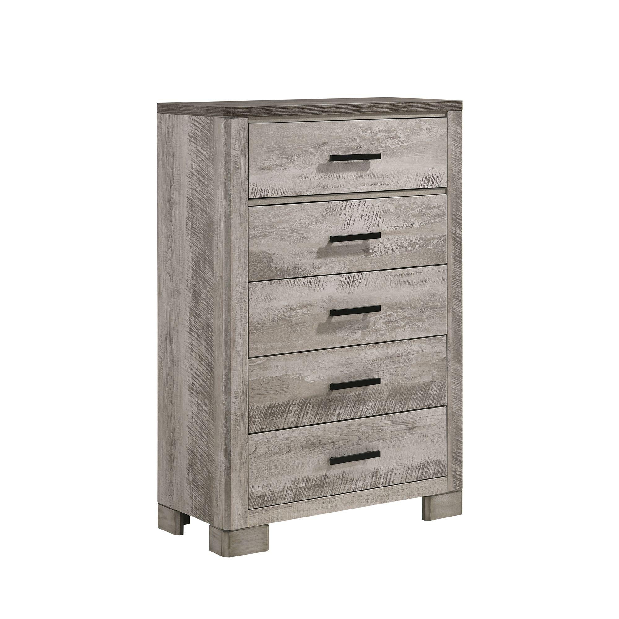 The Millers Cove 6-Drawer Dresser with Mirror will look great in your bedroom! This horizontal dresser offers six spacious drawers, perfect for storing away your belongings. The top drawers are lined with velvet, easily allowing you to store away your more delicate belongings. This dresser has a 3D paper finish, comes in distressed gray color, giving you a cool update to traditional furniture. The top of the dresser features a darker gray finish, beautifully contrasting with the light gray. The dark metal drawer handles complement the finish beautifully. The thick, blocked feet adds the perfect finishing touch to this transitional piece. - Six Spacious Drawers - 3D Distressed Paper Finish - Velvet, Lined Top Drawer - Dark Gray Top - Light Gray Color - Dark, Metal Drawer Handles - Block Feet - Dust Proofing on Bottom Layer - Anti-Tipping Rubberwood Particle Board with 3D Paper MDF Plywood Finger Joint Corner Blocks Wood Cleats and Screws 16 D x 61 W x 76 H, 160lbs. 1 Year Limited Manufacturer Warranty