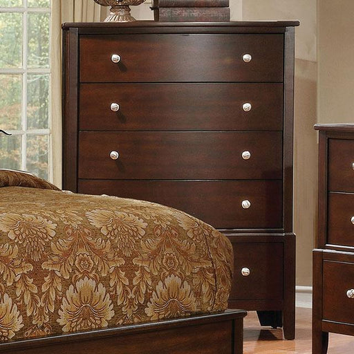 Update your bedroom with elegant styles portrayed by this beautiful bed set. A slight curved panel enhances the padded faux leather headboard while accented with diamond tufted detailing. It's the perfect collection for adding sophistication to your home.