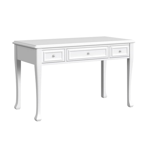 The Jesse 3-Drawer Desk features a crisp white finish, delicate moldings, and crystal-like knobs for a touch of sparkle. The two small drawers for ...