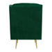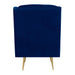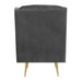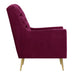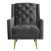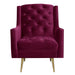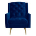 The Bryan Button Tufted Chair with Gold Legs is the epitome of modern glam design! This chair features a super luxurious velvet-like fabric, that feels good to the touch. Button tufting on the back and seat bring the glam, while the gold metal tapered legs bring the modern design. Straight edge arms and a foam cushion seat and back provide comfort while you sit back and relax in this chair. The chair is so nice, youll want to buy it twice. - Modern Glam Design - Button Tufted Seat and Back - Gold Metal Legs - Velvet-Like Fabric - Straight Edge Arms - Foam Cushion Seat & Back - Diamond Stitching Pine/Plywood Frame S-Spring Seat Construction Webbing Back Construction Foam Arm/Seat/Back Cushion Filling Arm Height: 25"; Arm Width: 3.5" Seat Height: 18"; Seat Depth: 21"; Inside Seat Width: 22" Back Height: 20" Feet Height: 9" Attached Cushions 34 D x 29 W x 38 H, 35lbs. 1 Year Limited Manufacturer Warranty