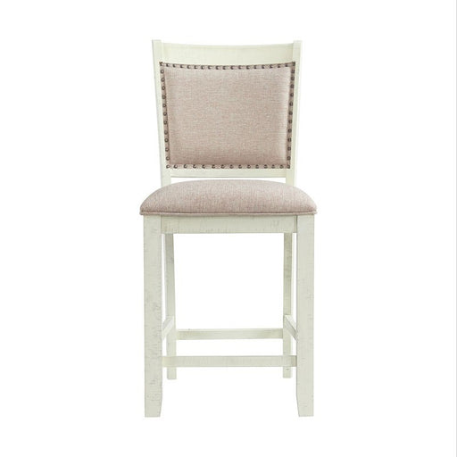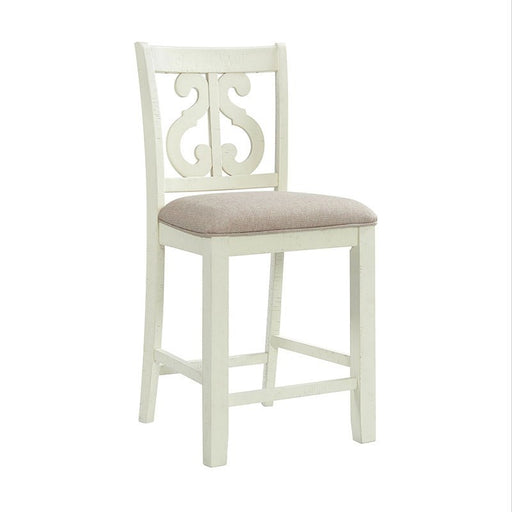 Elements International Stone Counter Height Upholstered Swirl Back Side Dining Chair (Set of 2) in White