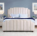 Bring a modern and up-to-date vibe to your bedroom setting with the sophisticated design of this contemporary bed. The sleek flannelette upholstery adds a soft cushion to the tall headboard and footboard, which feature a uniquely tiered silhouette to enhance the visual appeal. Sophisticated vertical tufts line the length of the upholstery to create a ridged look sure to match any aesthetic.