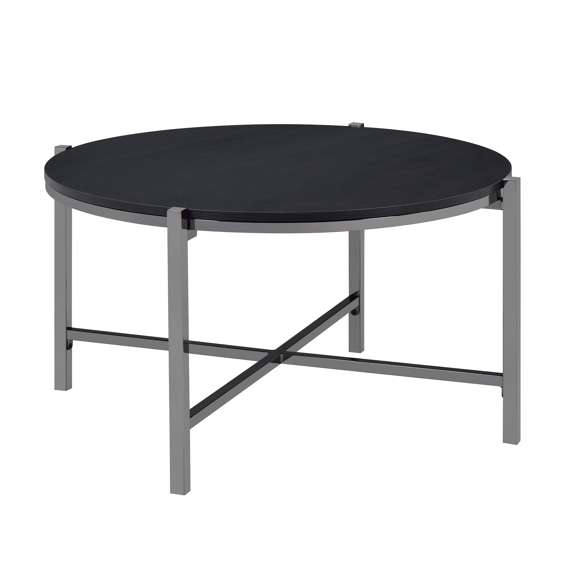 The Cybill 3PC Occasional Table Set is the perfect living room trio for your home! This set includes a coffee table and two end tables, creating the ideal living room. This set is perfect for small space living, thanks to its round design. The table tops are wooden with a black finish, while the legs are metal and powder coated in a chic gold. This set will create the ultimate chic, modern living room youve been craving! The stretchers at the base cross, elevating the design while also providing extra support for sturdiness. Add this trio to your home today! - Includes: Coffee Table & Two End Tables - Round Table Designs - Gold, Metal Legs - Modern Design - Cross Base Legs - Black Table Top Particle Board Metal D x W x H, 64lbs. 1 Year Limited Manufacturer Warranty