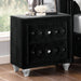 Showcase your personal taste with this bold statement piece in your bedroom. Fully upholstered in flannelette, this nightstand features padded fabric and crystal buttons. Each drawer handle is made of glistening acrylic crystals, while silver-painted cabriole legs are perfect in bringing in majestic vibes that this ensemble set out to do.