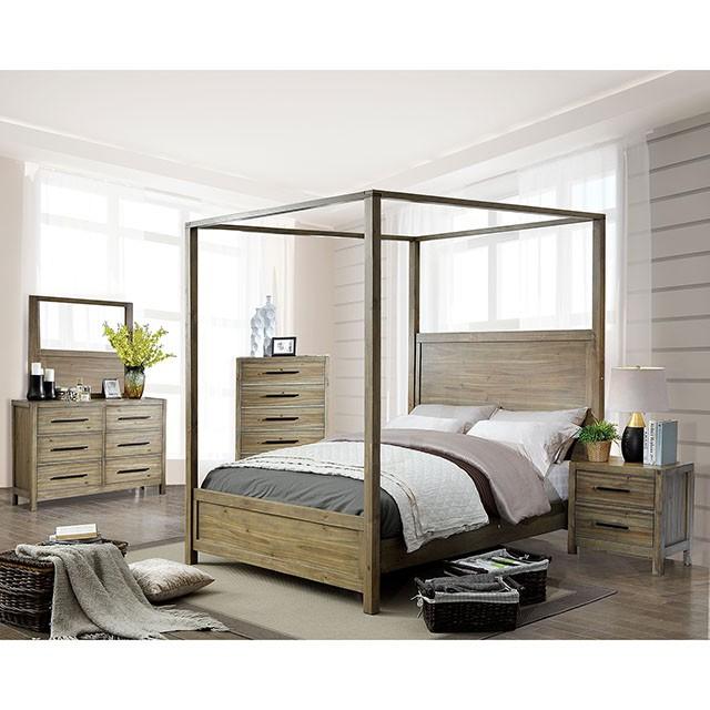FOA EastThis large dresser mirror is framed by light oak finished wood panels, making for a simple and elegant addition to your bedroom set.