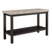The Kansas Sofa Table with Marble Top is the perfect addition to your home! This sofa table features a marble table top, making it the perfect piece for your living room. The base features a bottom shelf, allowing you to store away your favorite d- cor or coffee table books. The base of the table is finished in a rich, espresso; making it the perfect transitional color for your home. The straight legs keep this contemporary design a staple in your home year after year. - Marble Table Top - Bottom Shelf - Espresso Finish - Straight Legs - Contemporary Design - Rectangle Design Marble Table Top MDF & Birch Veneer Butt Joint Cleat/Dowel/Corner Blocked Connection 18 D x 48 W x 30 H, 80lbs. 1 Year Limited Manufacturer Warranty
