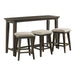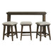 Morrison Multipurpose Bar Table Set - Multipurpose Bar Table Set - Includes: Table and Three Bar Stools - USB Ports - Power Strip - Ships in One Box - Upholstered Seats - Gray Fabric - Straight Legs - Stretchers along Barstools - Piping along Seat Cushions - Smokey Walnut Finish with Distressed Marks MDF w/ Acacia Veneer Poplar Wood 100% Polyester Plywood 0 D x 0 W x 0 H, 93lbs. 1 Year Limited Manufacturer Warranty