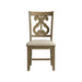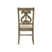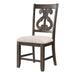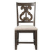 The Stone Wooden Swirl Back Side Chair Set will be the new standout in your dining room! The back of this chair features an intricate, open-swirl back design, making this duo the reason you update your dining room. The seat is upholstered in a dark taupe and is filled with foam cushion to make for a comfy seat while sitting through long dinners. Detailed piping is featured along the edges of the seat, adding an extra element of design. The back and legs of the chair are finished in a smokey walnut and feature distressed makings throughout. The base of the chair has three stretchers, offering long lasting durability for many years to come. - Open Swirl Back Chair Design - Foam Filled Cushion Seat - Taupe Upholstered Seat - Smokey Walnut Finish - Distressed Markings Throughout - Piping along Seat Cushion - Three Stretchers along Chair Base Rubberwood MDF with Acacia Veneer Plywood Foam Cushion Seat 23 D x 20 W x 41 H, 42lbs. 1 Year Limited Manufacturer Warranty